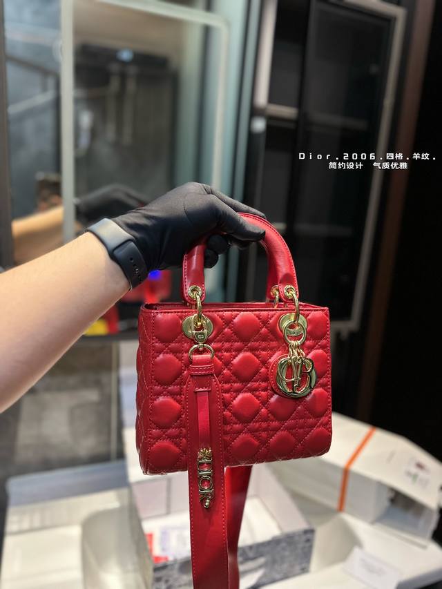 礼盒包装 Dior羊皮戴妃包 经典菱格刺绣~4格 经典百搭不过时20Cm