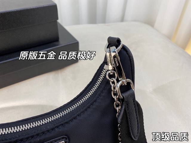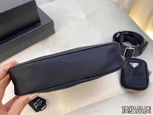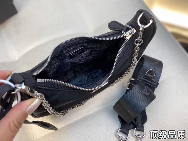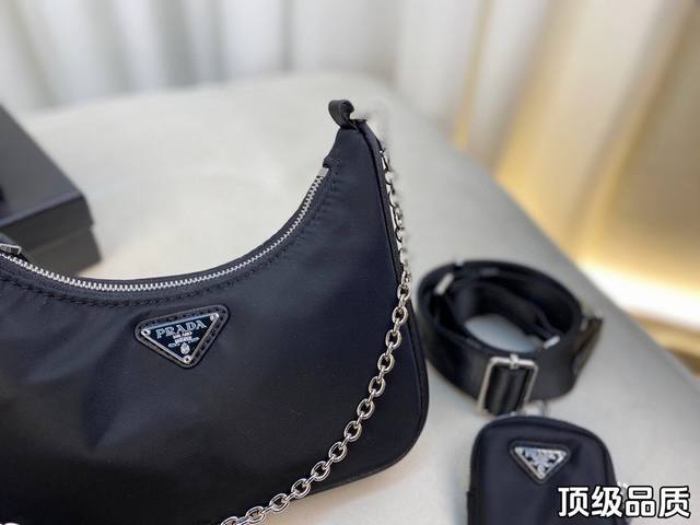 配盒 顶级品质 Prada Hobo尼龙三合一 绝对是日常出街实用频率最高的一款包 一个大包加上一个小包 一条宽肩带加一个链条 脑子里是瞬间相出了n种搭配方式,