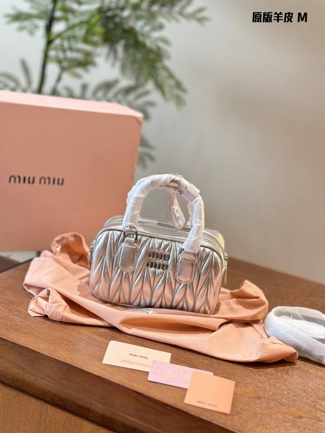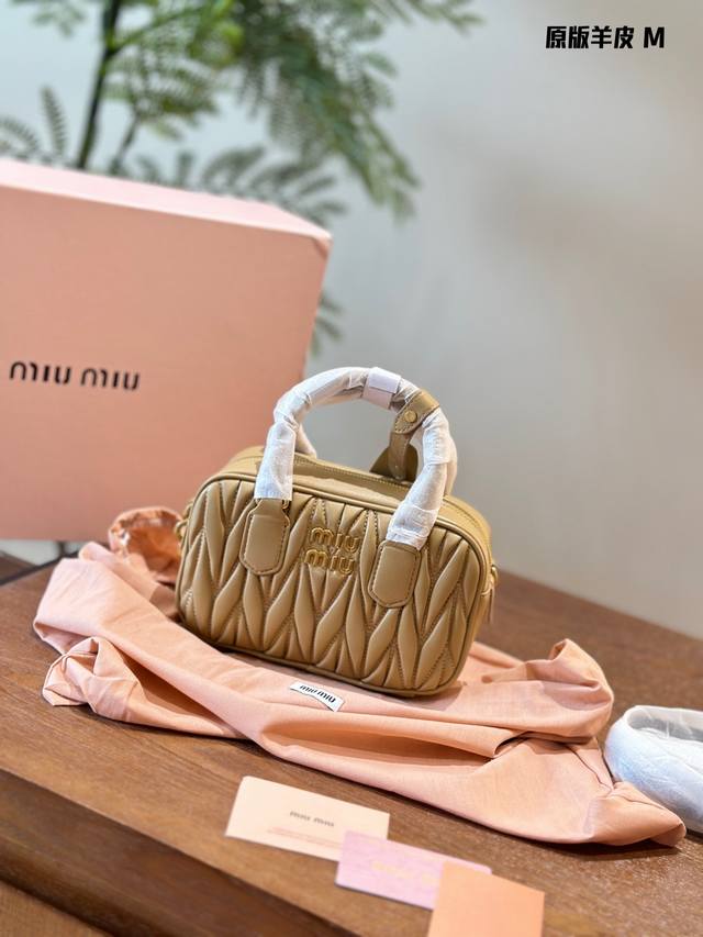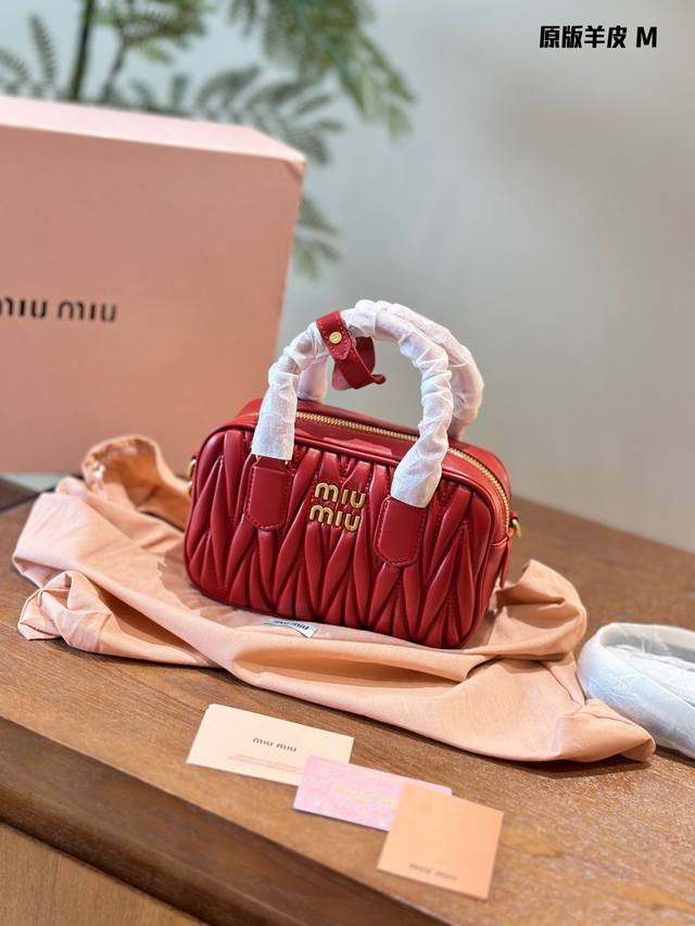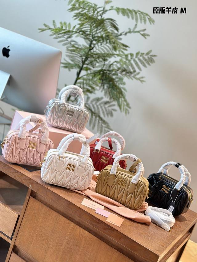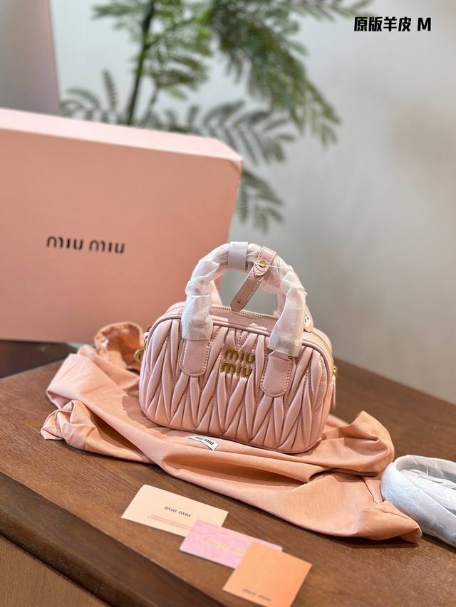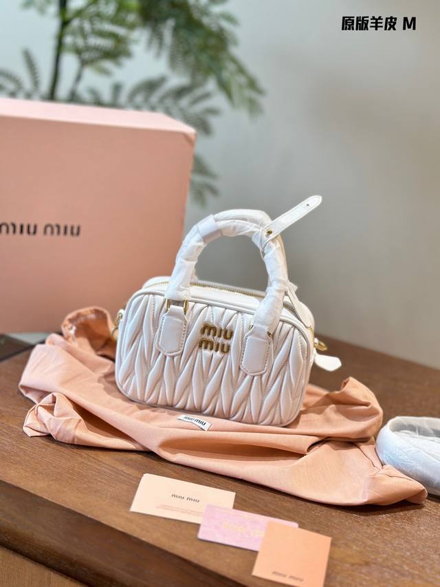 羊皮 Size: 22*11Cm 可盐可甜的miumiu女孩 Miumiu Wander包包 好搭什么风格都能驾驭材质很柔软 容量也非常ok 复古俏皮的保龄球包