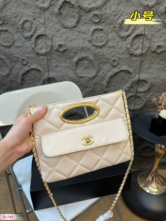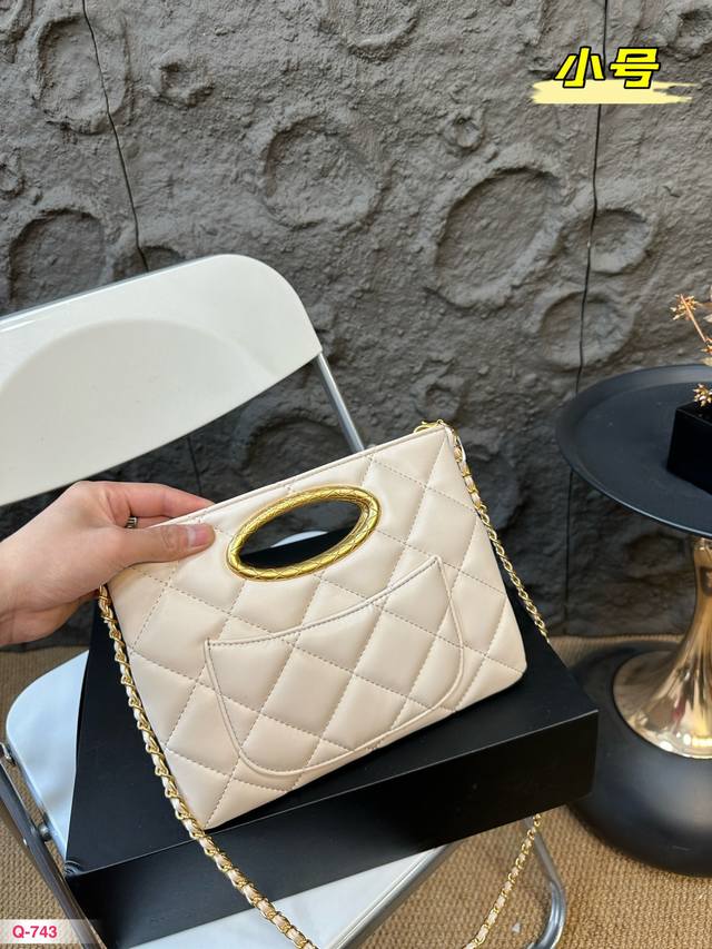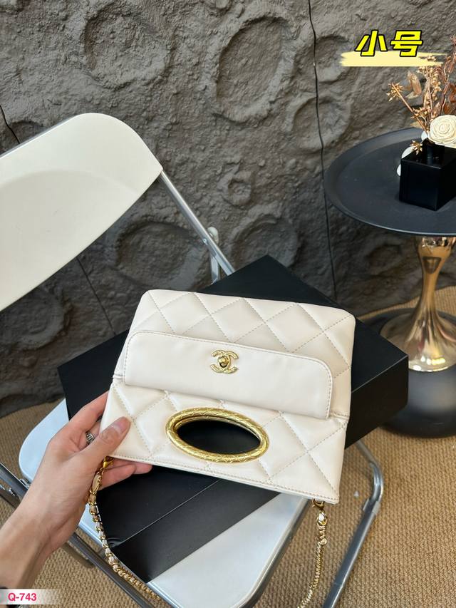 小号 配折叠盒 香奈儿chanel 24B最新款黑金手包晚宴包很精致小巧时髦的一款!!很适合当晚宴包黑色的大菱形纹路与金色双c标志的点缀手柄和双c的五金格纹像