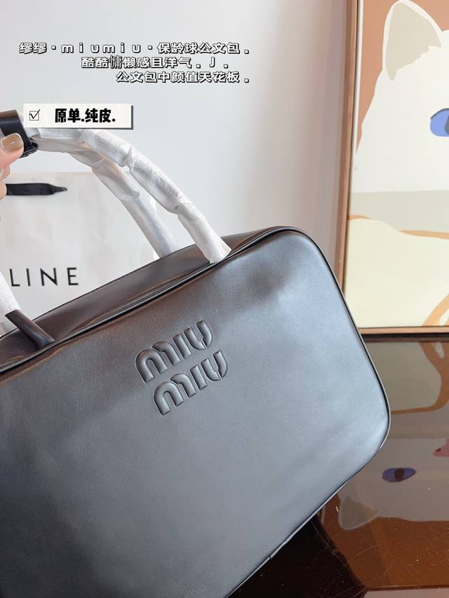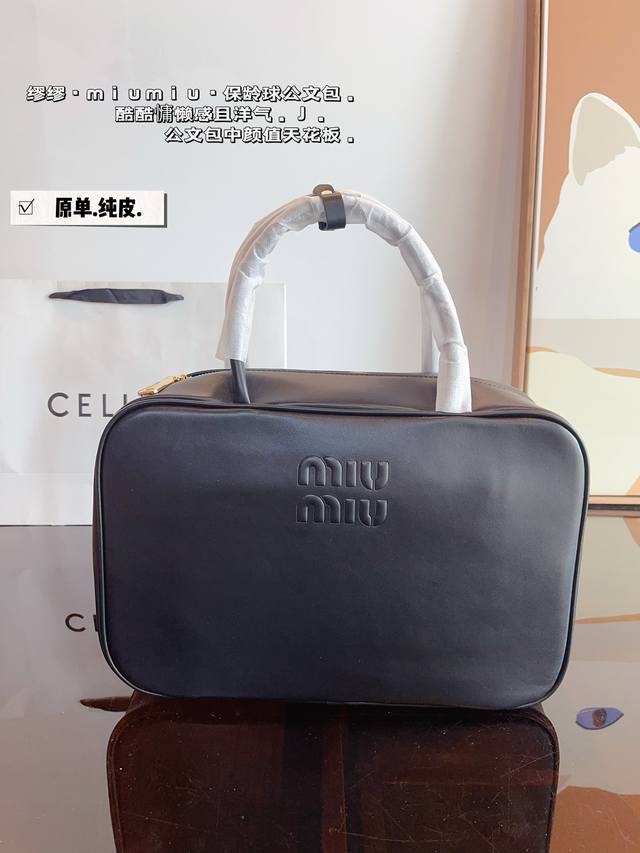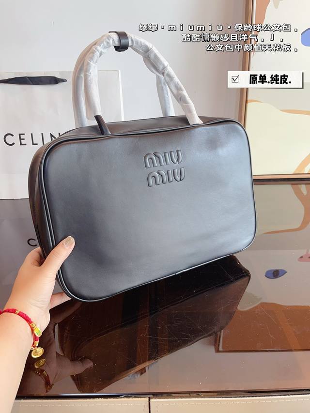 / 纯皮. 缪缪miumiu 保龄球公文包. 今年秋冬最火得miumiu 女孩.. 甜度刚刚好 很难不爱的 散发着复古的气息 背上它不仅是公主也是女王 小小的身体大