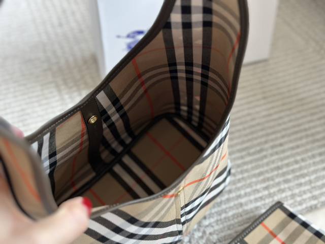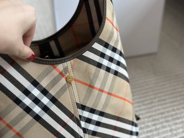 最新bur女士格纹水桶包菜篮子 领先柜台款,100% 原厂进口平纹软牛皮,原厂进口格子帆布,自重超轻,非常实用,做工细节完美精致。 尺寸: 27 22Cm