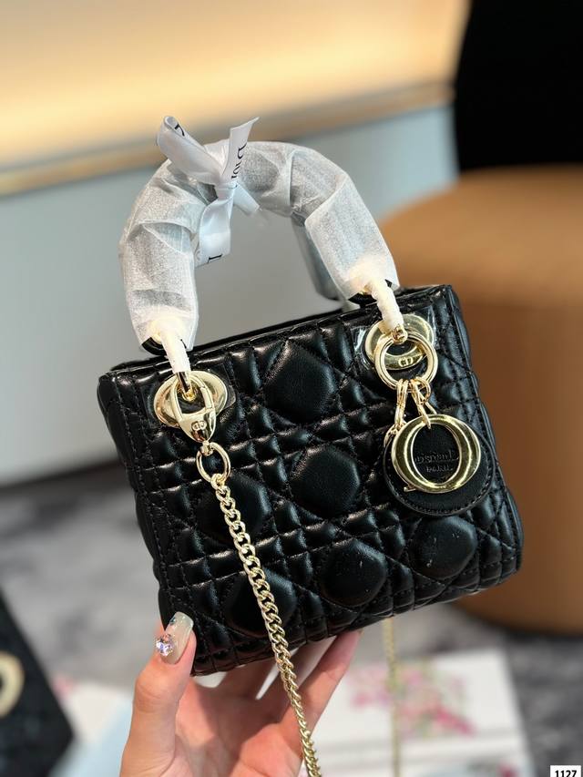 配折叠盒 尺寸:20Cm 17Cm 高品版.升级顶级原单出货 迪奥 戴妃羊皮款 搭配最新的肩带 更加加分!! 小牛皮材质!