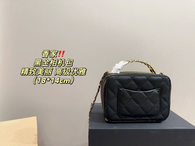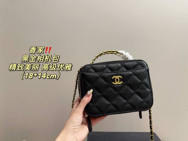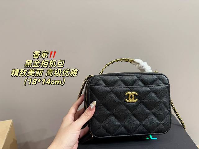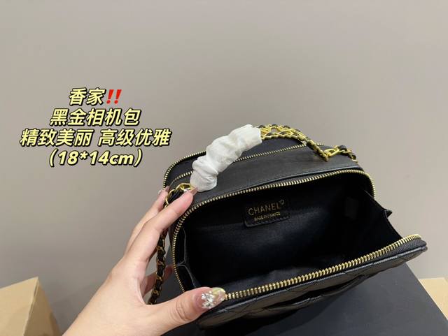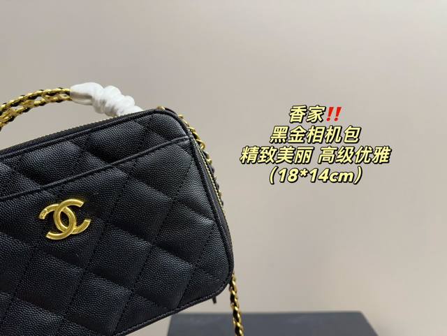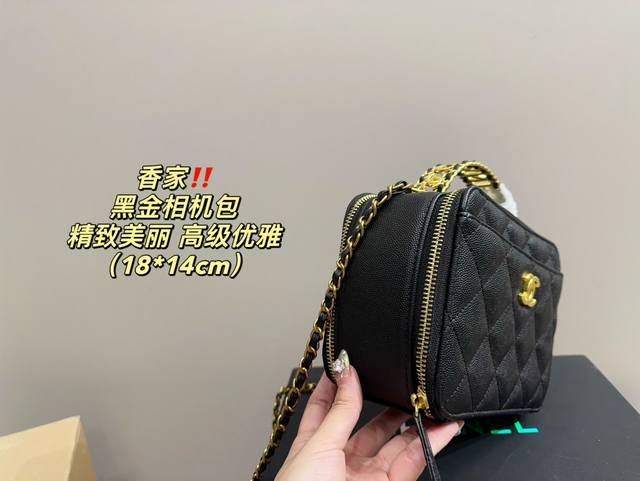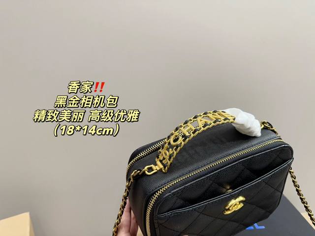 / 配盒尺寸18.14 香奈儿 Chanel 黑金相机包 精致美丽 高级优雅 很好驾驭,不挑衣服,不挑季节 一年四季都可,可盐可甜 高个子小姐姐背,气质御姐范 小个