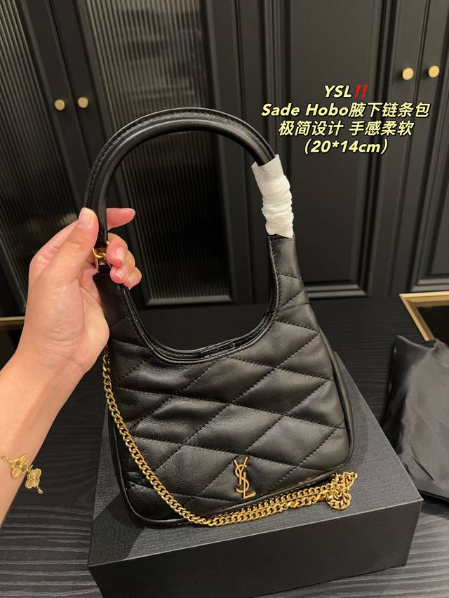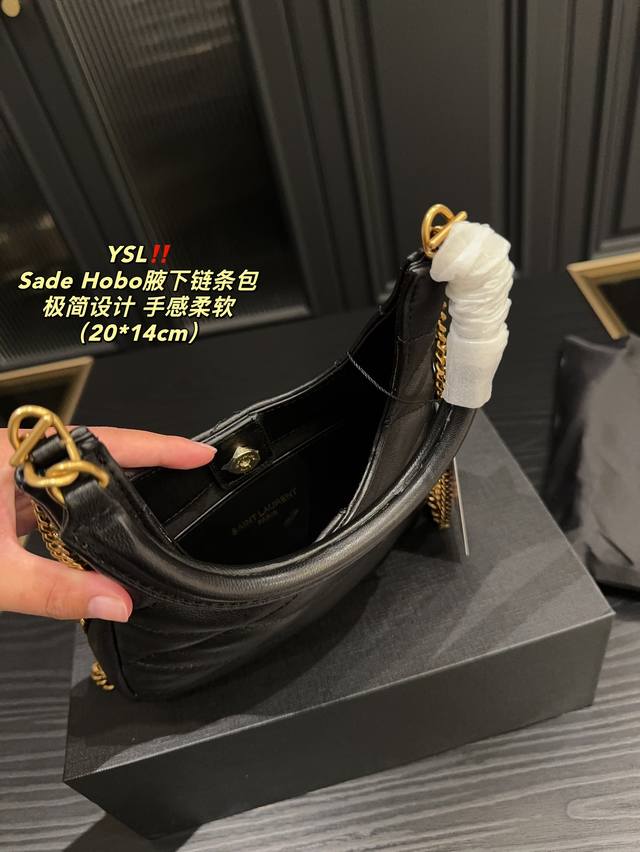 / 配折叠盒尺寸20.14 圣罗兰 Ysl Sade Hobo腋下链条包 绵密的手感,轻便的包包 很有质感 可盐可甜 上身绝美 无可比拟 是每个追求漂亮的女孩必入单
