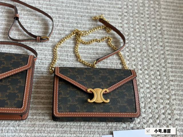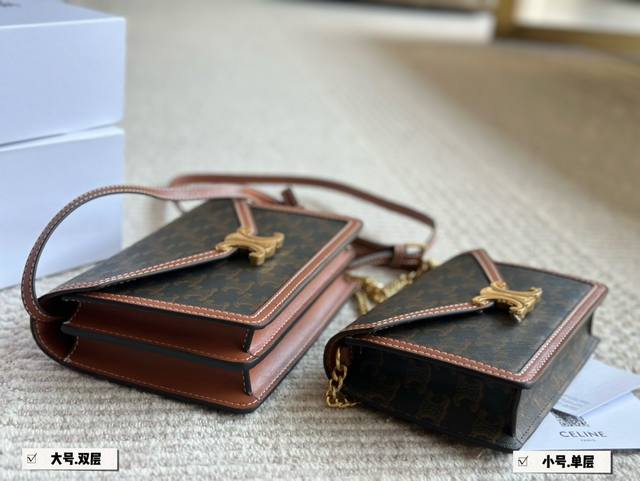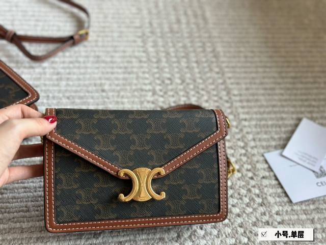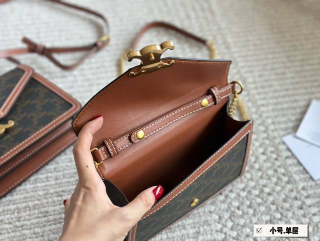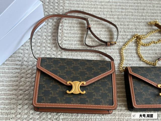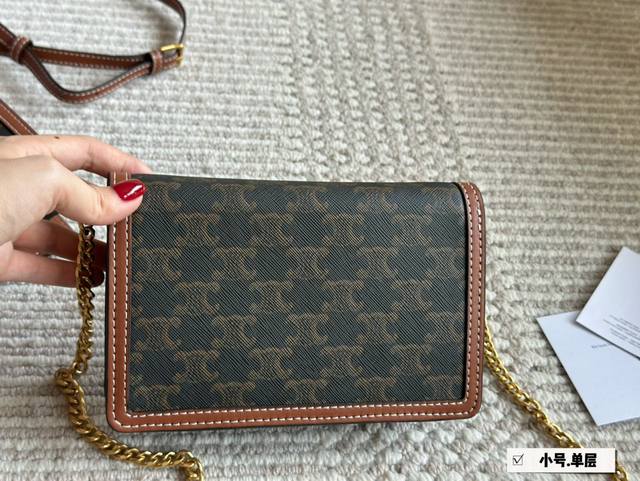 牛皮版本 celine 相机包 可以手拎或斜挎 容量非常可观 凯旋门老花图案 一年四季都可 尺寸 22 16Cm