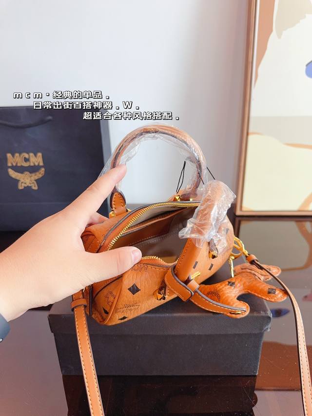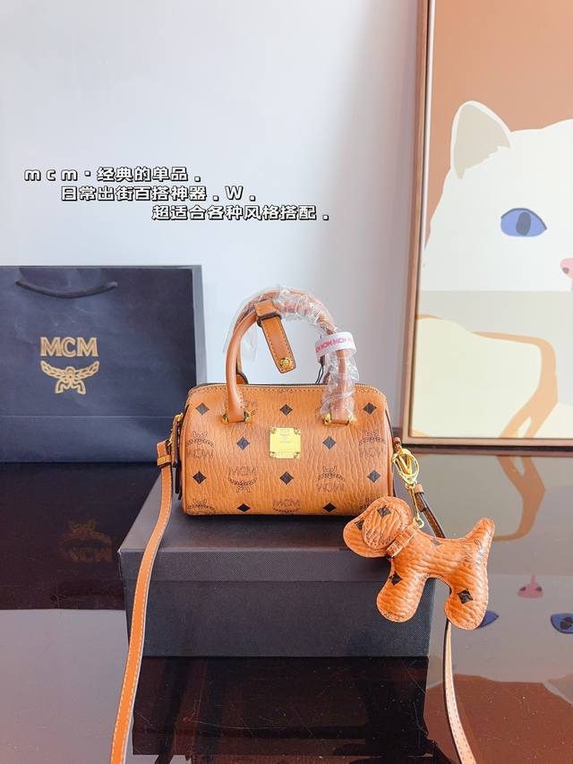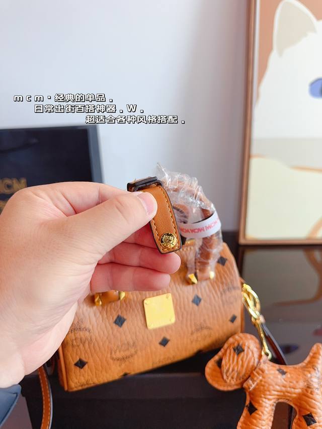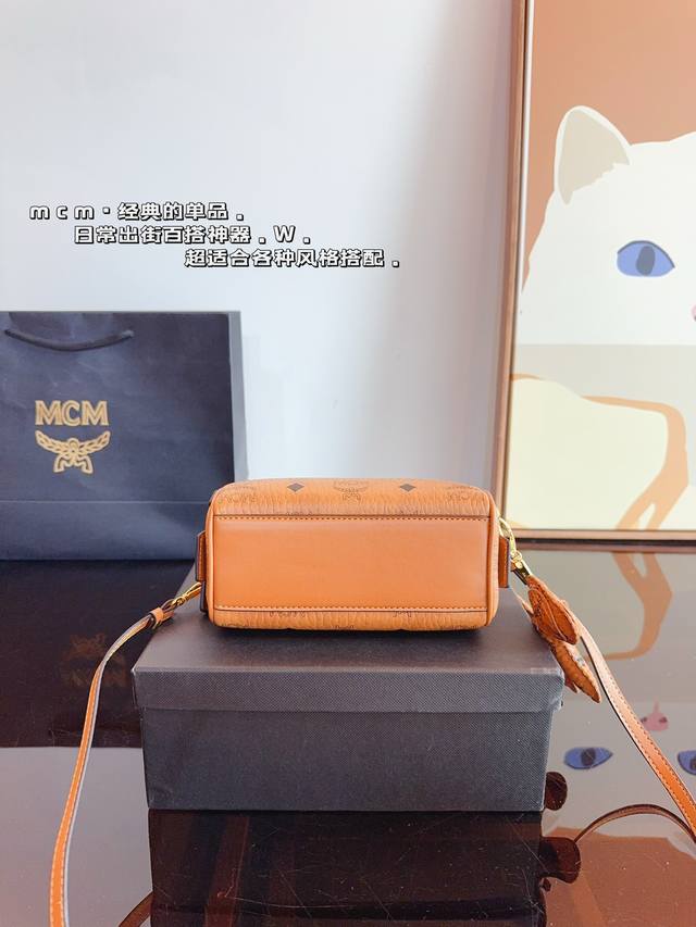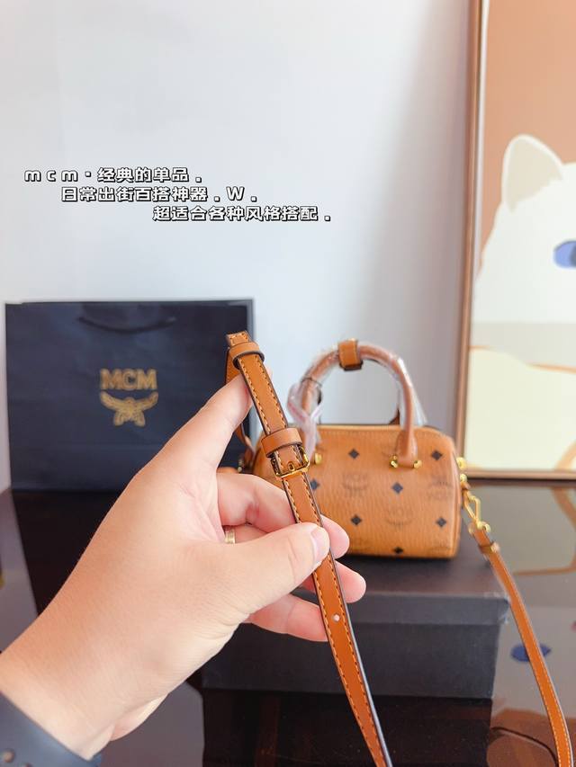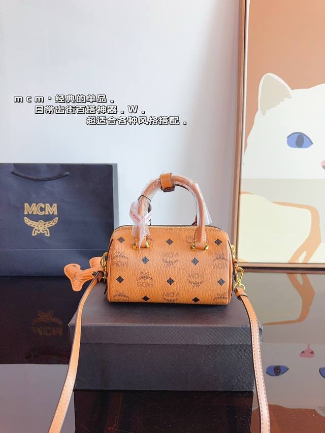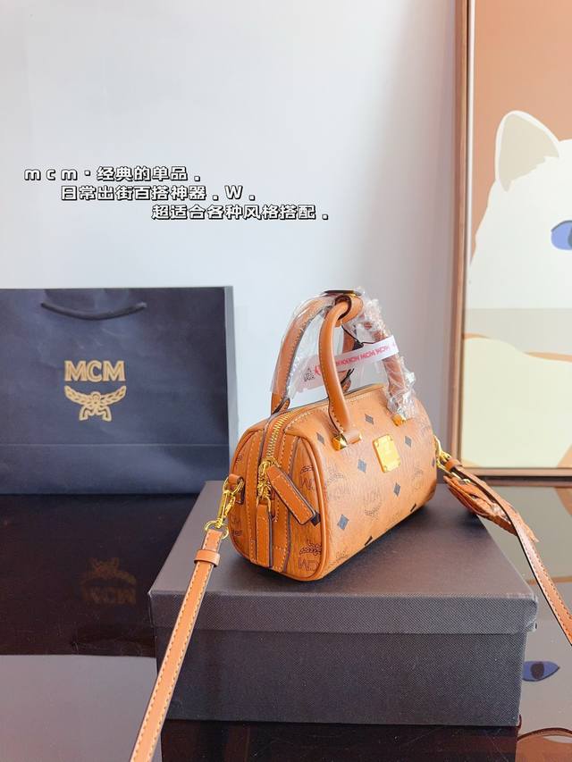 配礼盒 Mcm Mini 波士顿枕头包 简单百搭 颜值高 日常出街首选 潮酷时尚女孩必入款尺寸18*5*10Cm