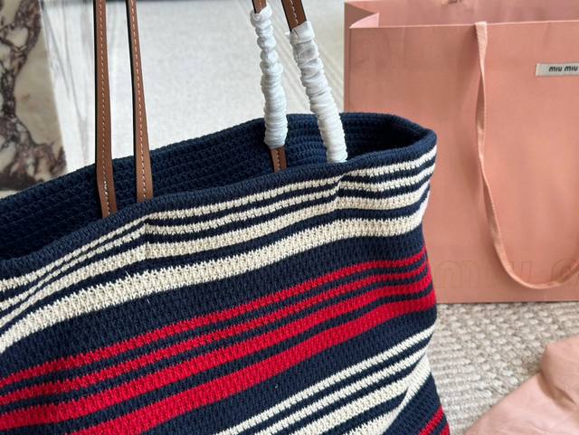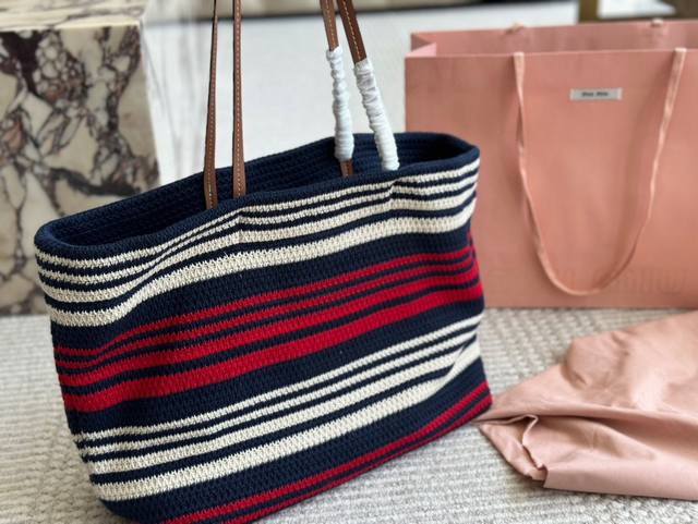 / 夏日限定无盒! Size 33*34Cm Miumiu夏日限定沙滩包 草编系列新品 当然这个色彩是最吸引 蓝色杏色搭配 是夏天的颜色哦!