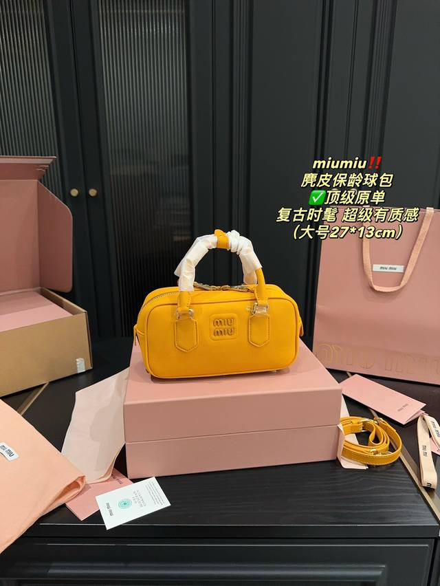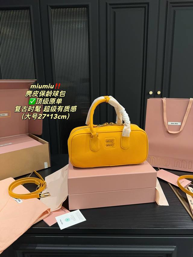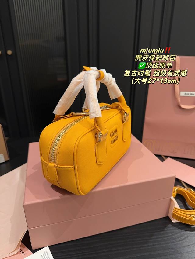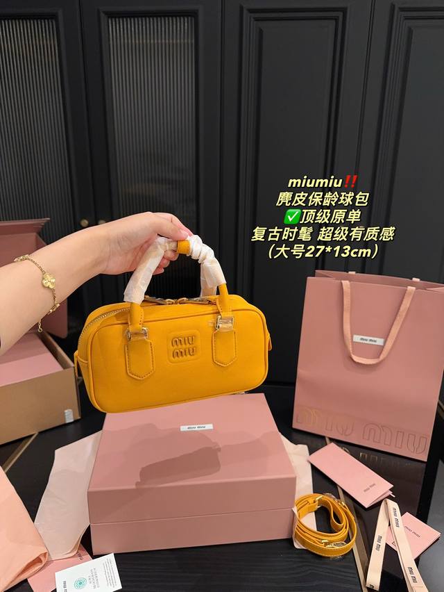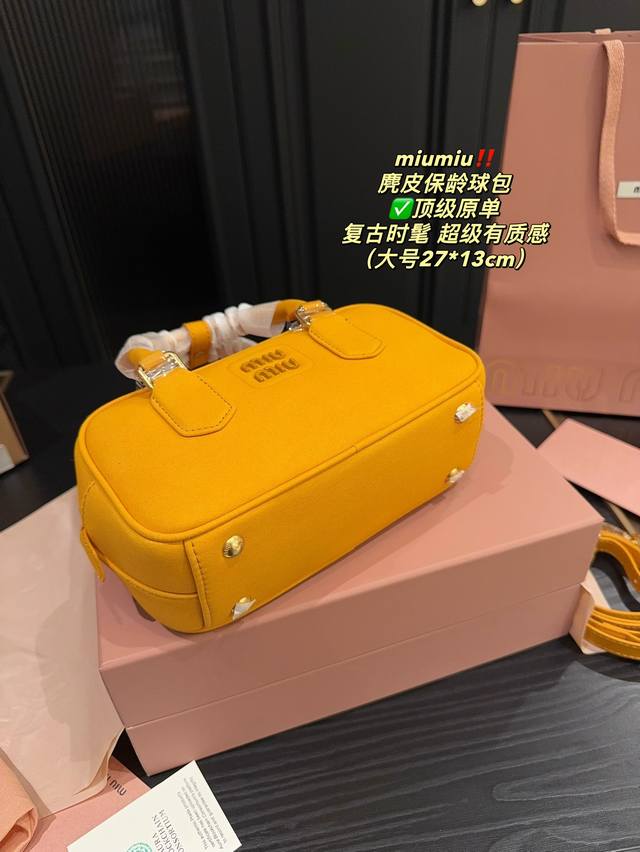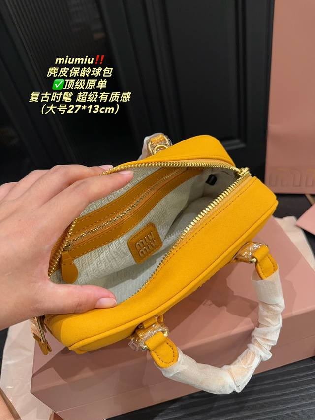 / 顶级原单大号 全套包装尺寸27.13 小号 全套包装尺寸22.11 Miumiu 麂皮保龄球包 超级有质感 轻松演绎复古时髦 包型挺阔,简约而不简单不需要过多的