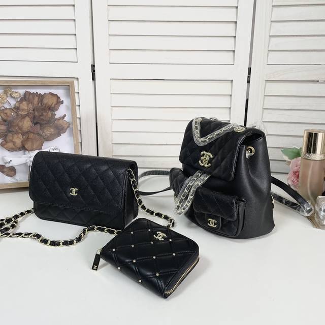 / 一组 Top. New 2024.高品质三件套组合 Chanel 双肩发财包钱包 外贸订单款