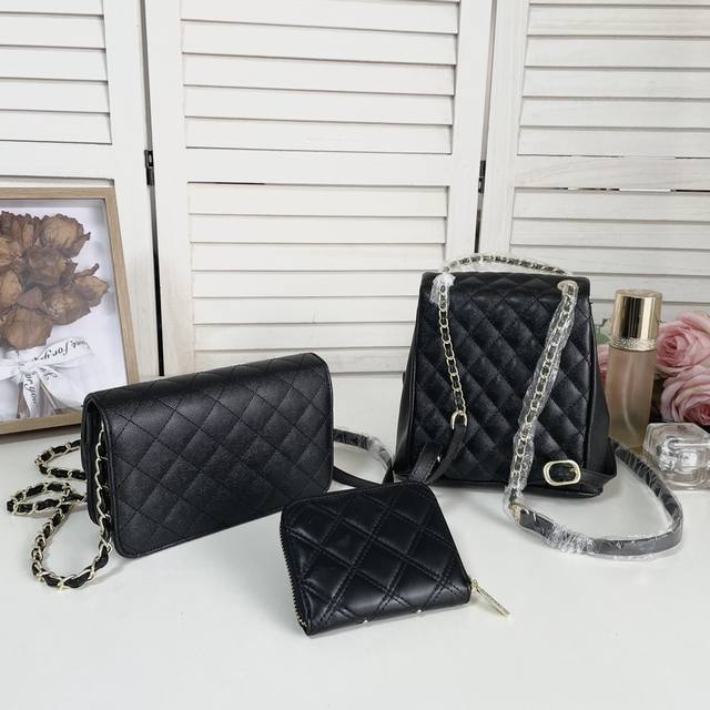 一组 Top. New 2024.高品质三件套组合 Chanel 双肩发财包钱包 外贸订单款