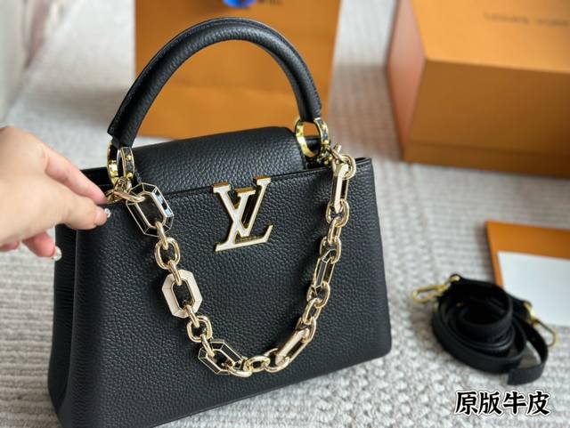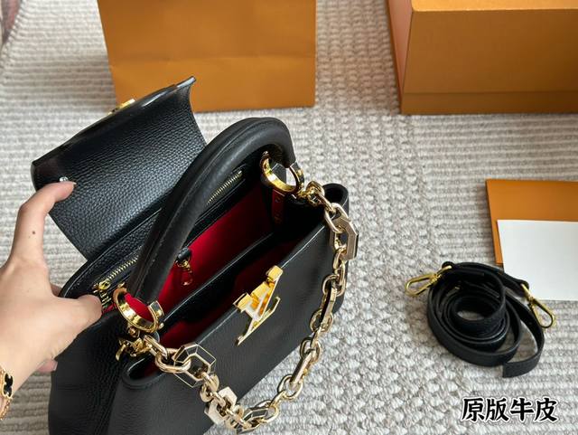 高订 礼盒 原版牛皮 Size 27*20Cm 大 L家 Capucines手袋 全粒纹taurillon牛皮裁制 感觉低调 但有奢华质感 !! 经典!经典!
