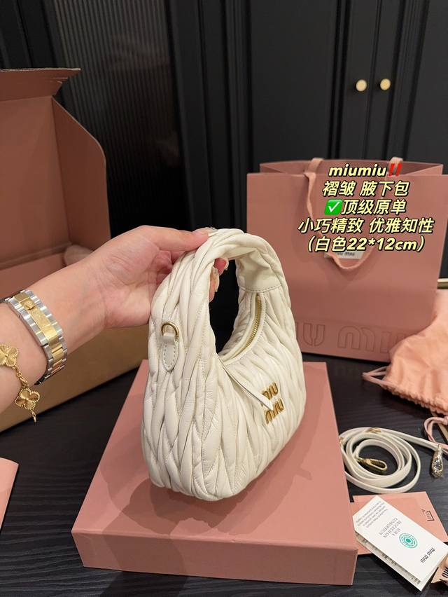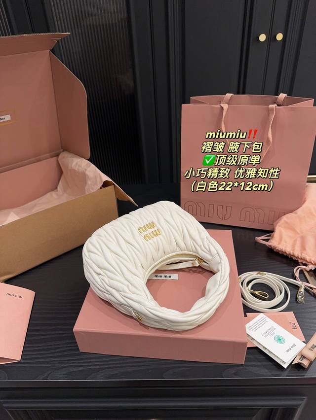 顶级原单 全套包装尺寸22.12 Miumiu 褶皱腋下包 牛皮材质,奶乎乎,软绵绵,太适合秋冬無颜色了,直接把我美哭了。设计师这个脑壳太厉害了怎進。 Mium