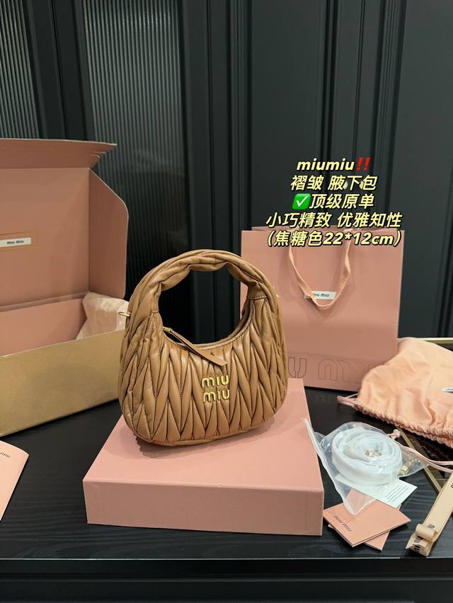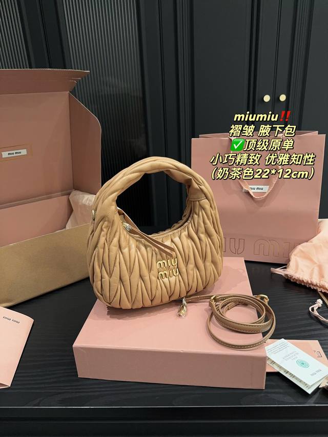 顶级原单 全套包装尺寸22.12 Miumiu 褶皱腋下包 牛皮材质,奶乎乎,软绵绵,太适合秋冬無颜色了,直接把我美哭了。设计师这个脑壳太厉害了怎進。 Mium