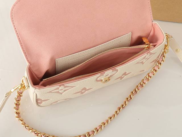 变码芯片版!顶级原单、加强版本款 Wallet On Chain Ivy 手袋为 Monogram Empreinte 皮革渲染粉彩色调,以磁扣翻盖开启柔软舒适的贴身构型。可调节皮革肩带和皮革编织链条均可拆卸,为昼夜场合提供多种背携选择。