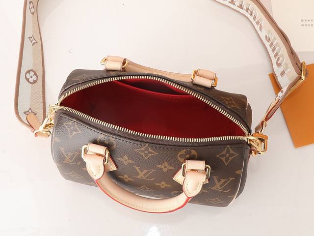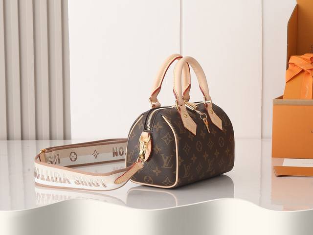 / 顶级原单、加强版 Speedy Bandoulière 20 手袋采选 Monogram 帆布、牛皮革饰边和织物内衬,以玲珑尺寸延续路易威登 Speedy 旅行