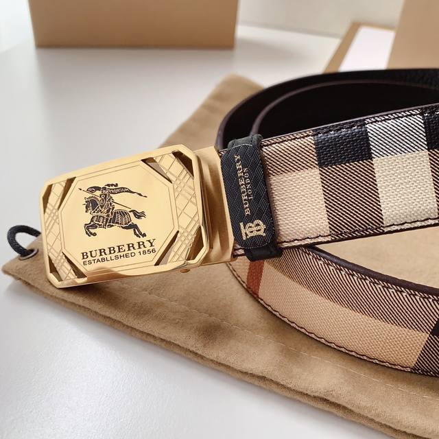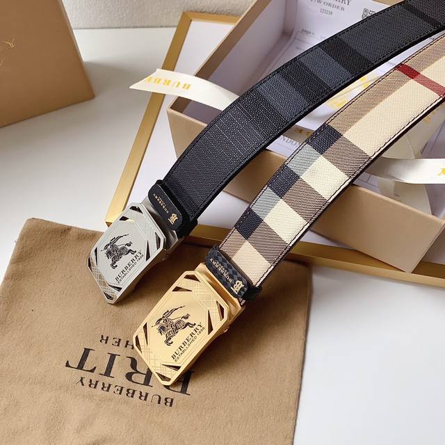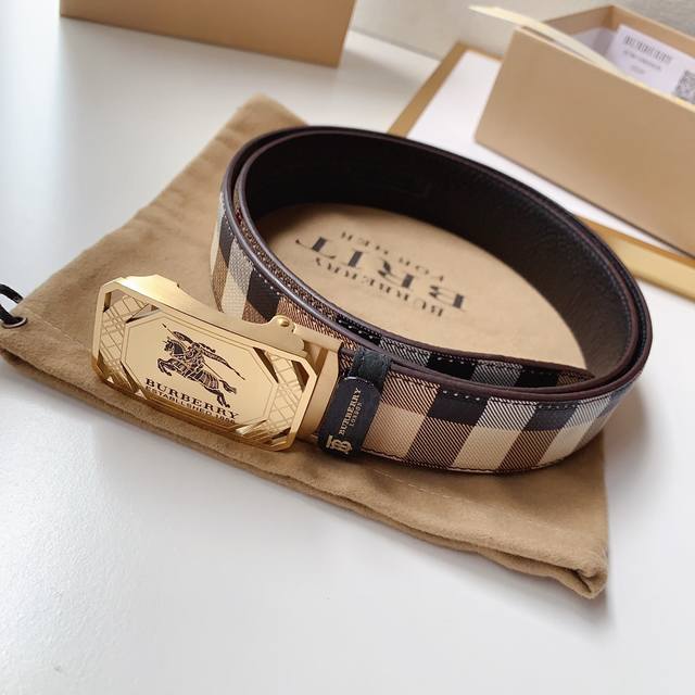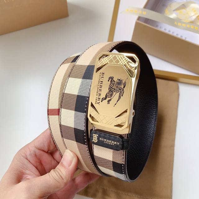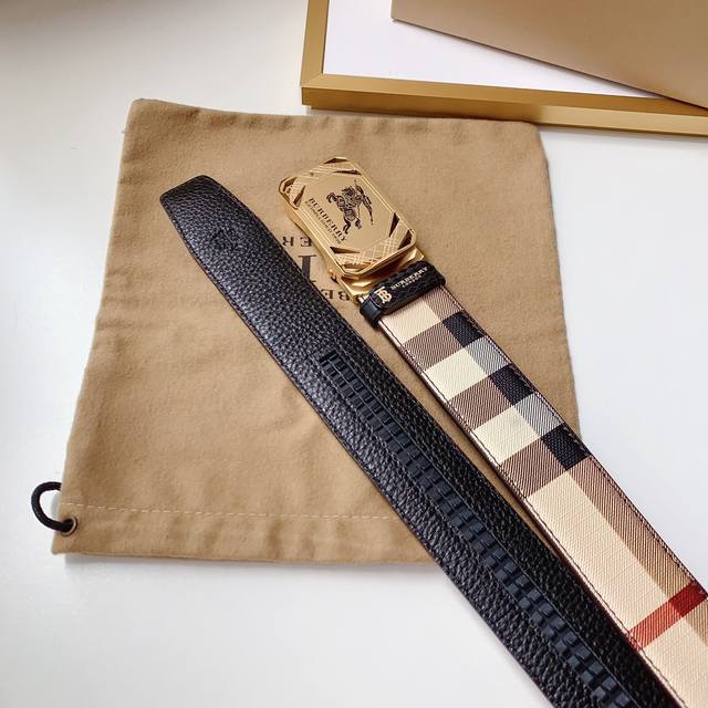 配图片款正版包装,巴宝莉官网同步正版,原单精品,镀钯镂空设计精品纯钢自动扣,真空电镀不掉色,正版面料缝制,进口头层牛皮,质感柔软,版型时尚高档 宽度3.4Cm