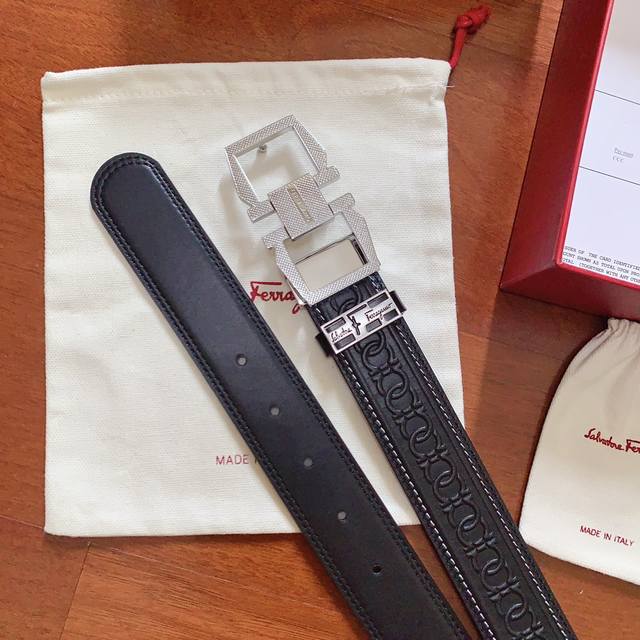 配正版包装,菲拉格慕原厂八字扣精品新款logo打磨制作,正版同步,皮纹清晰质感舒适 版型时尚高档 宽度3.8 Cm 高清实拍大图 ,保质保量