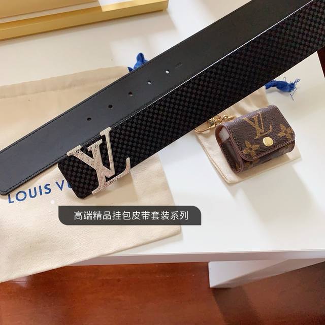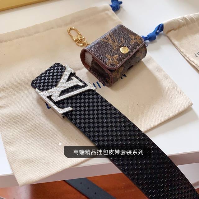 / 高品质原单精品,Lv路易威登新款皮带耳机包套装系列,耳机挂包 可装airpods耳机,零钱包 正版开模,搭配纳米电镀纯钢扣,宽度4.0Cm,配正版包装,高端品质