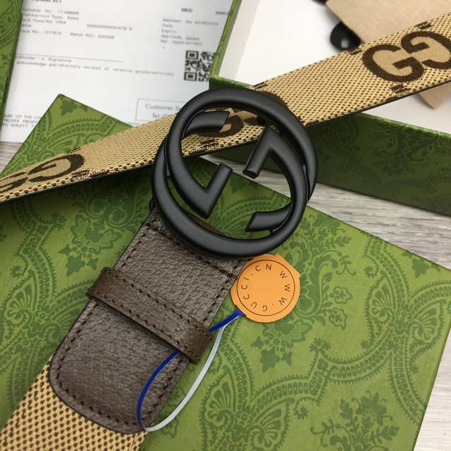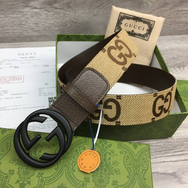 Gucci 意大利进口专柜专用印花帆布配平纹底,搭配真空电镀喷砂纯铜扣,官网新款,专柜有售,市场顶级品质,支持验货 配送全套专柜包装,宽度 4.0Cm