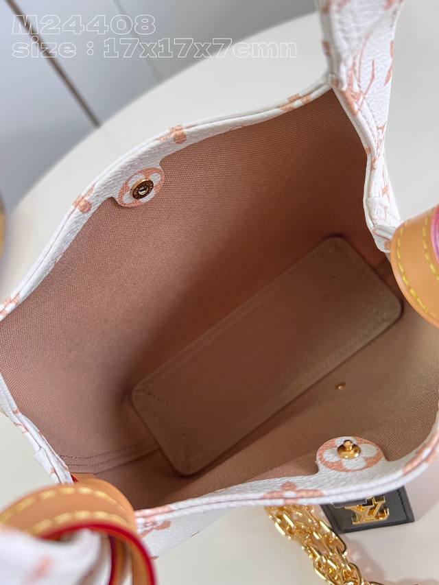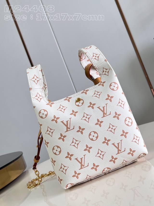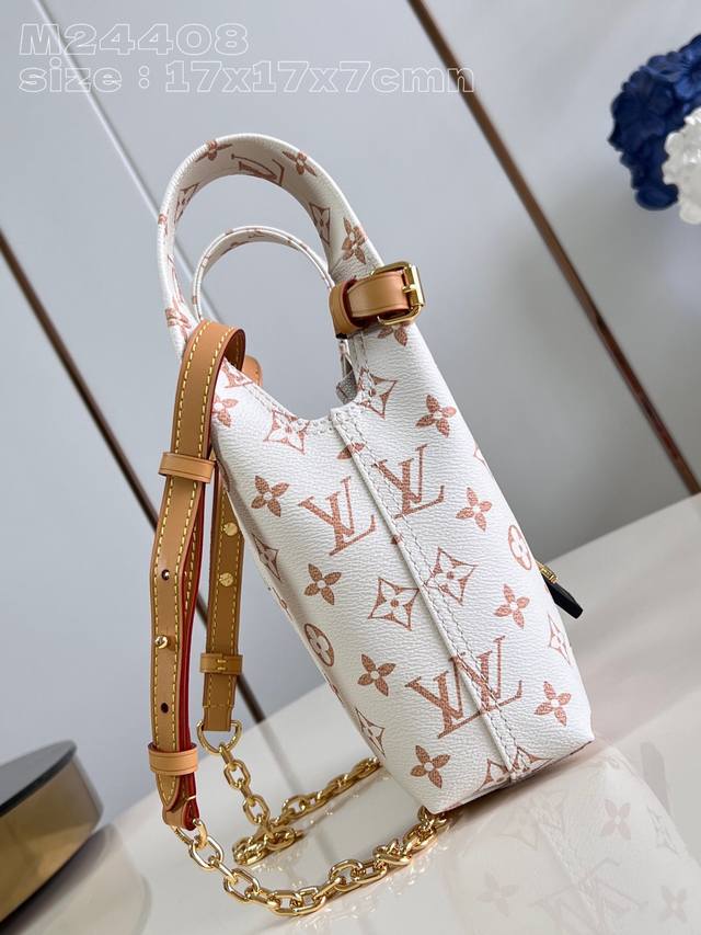顶级原单 独家实拍 M24408白花 Atlantis Bb手袋采用monogram反面帆布制成,饰有深色牛皮饰边,包括lv名牌和可拆卸肩带。受购物袋启发的时尚前卫造型和柔软的结构使其对身体非常友好。可调节、可拆卸的肩带可实现跨身携带。Size:17X17X7Cm O