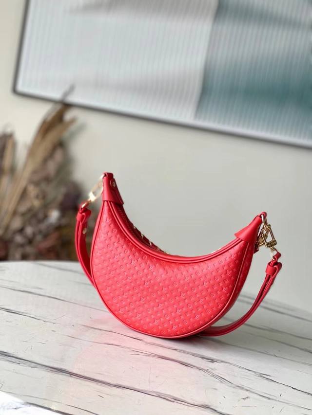 顶级原单 海外顶级原单 M22594 红色 由牛皮革制成的 Loo 手袋,饰有微缩版 Monogram 花纹。彩色丝印字母标识和 Monogram 花卉图案与包