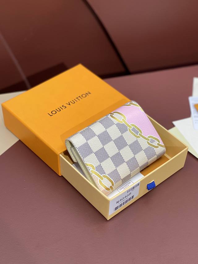 出厂价 N40468 白格丝印! 此款钱夹采用柔软的monogram 帆布制成!衬以颜色鲜艳的內衬!气质极为优雅!轻便!零钱袋的设计造型更为实用!尺寸:12X9Cm。