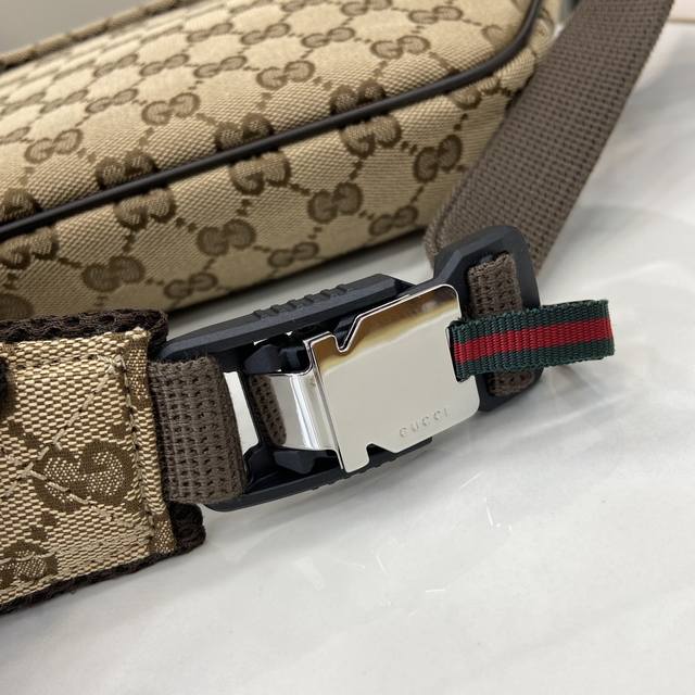 秋冬男士系列经典单品生动展现运动风格。该系列单品采用original Gg帆布制作,隽永廓形搭配甄选配色,织带和gucci压花标识等精致细节传递时尚气息。这款小号腰包以米色和乌木色帆布打造,搭配一个内部口袋和多个实用外部口袋。