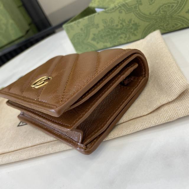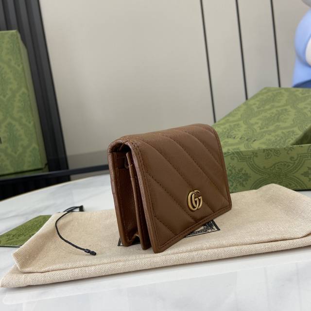 Gg Marmont系列卡包采用绗缝皮革打造,配以v形纹设计,背面装饰gg标志。