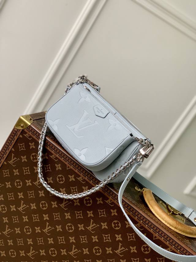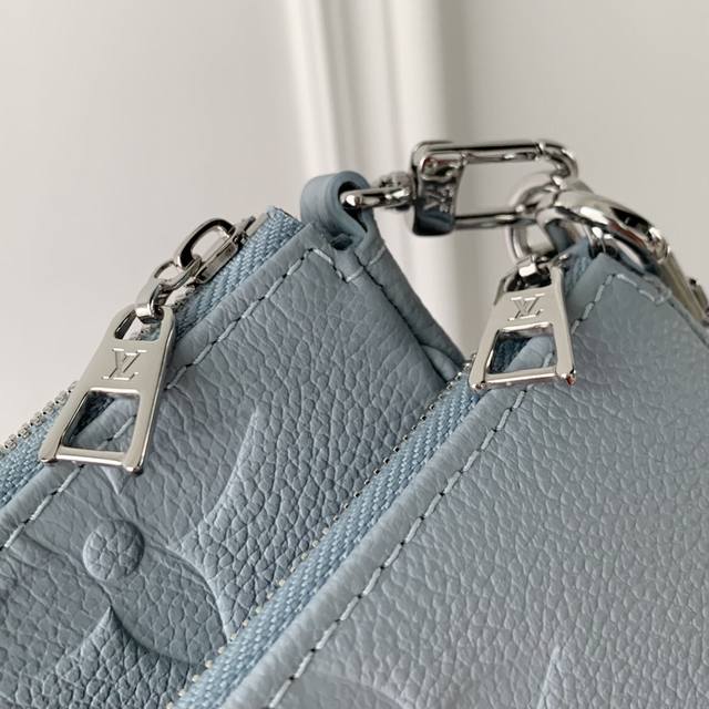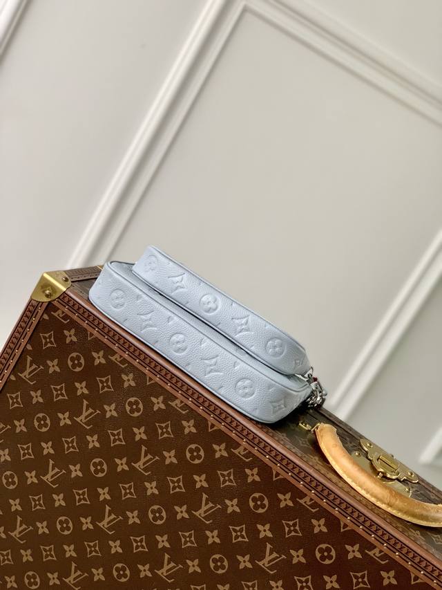 M47173蓝 M80399本款 Multi Pochette Accessoires 手袋以 Monogram Empreinte 皮革塑造轻盈构型,将独立的