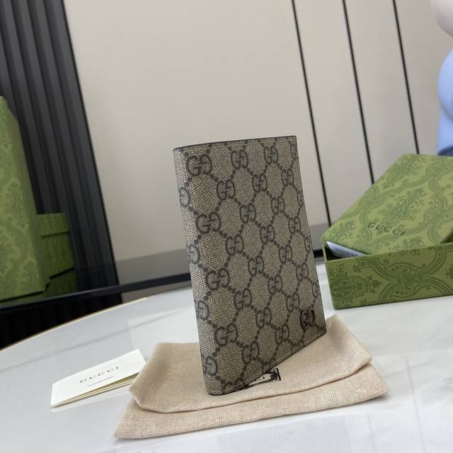 配全套原厂绿盒包装 新品 饰gg细节gg护照夹。新系列呈现纤薄且小巧的小皮具,焕新融蕴多种绚丽色彩,以充满对比美感的双色调设计令点缀于包身的gg标识风采尽绽。这款护照夹以黑色gg Supreme帆布匠心打造,内里甄选灰色光面皮革制作而成,设有四个卡片隔层。黑色gg Supreme帆布,灰色皮革内里,黄铜配件,配深灰色陶瓷效果饰面,云纹织物衬里gg细节,内部:四个卡片隔层和一个护照袋。