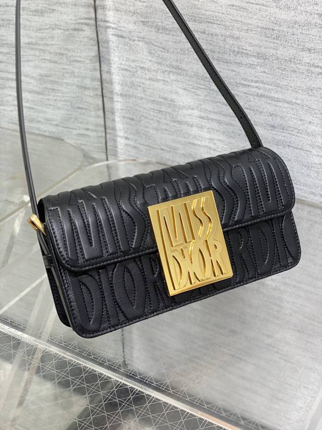 黑色现货 Dior秋冬系列miss Dior复古 采用黑色牛皮革精心制作 别具一格的字母压花标志 精湛的工艺 宽敞的隔层设计 搭配可拆卸的肩带 可手提 肩背或手