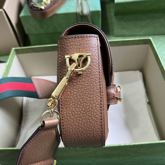 配全套原厂绿盒包装 原厂皮马鞍包古驰aria-时尚咏叹调 系列运用现代手法焕新演绎经典元素。竹节是古驰的经典元素之一,自上世纪40年代以来出现于品牌的各个系列之中。历经八十多年的发展演变,这一经典元素糅合棕色皮革,焕新呈现在这款小号手提包上。手袋还配有两根可互换的肩带 光面皮革材质展现优雅大方的经典气质,条纹织带肩带则彰显强烈的品牌内涵。
