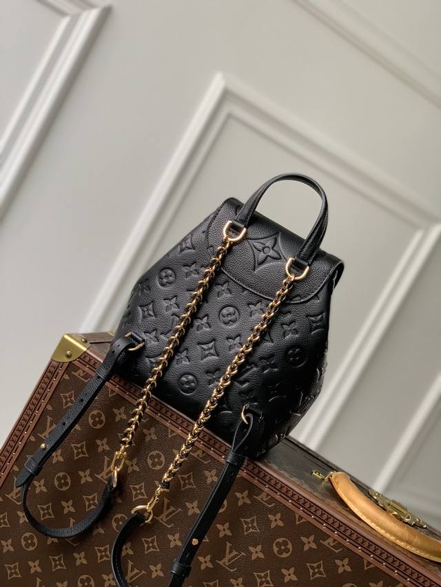 头层皮 顶级原单 M47072 本款 Backu 双肩包取材 Monogram Empreinte 牛皮革,低调铺陈 Monogram 压纹。可拆卸并调节的肩带实现单肩和双肩背携,顶部手柄和编织链条提供手提或斜挎选择