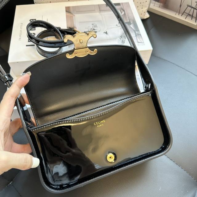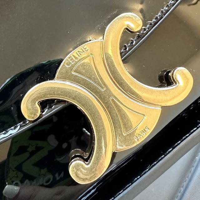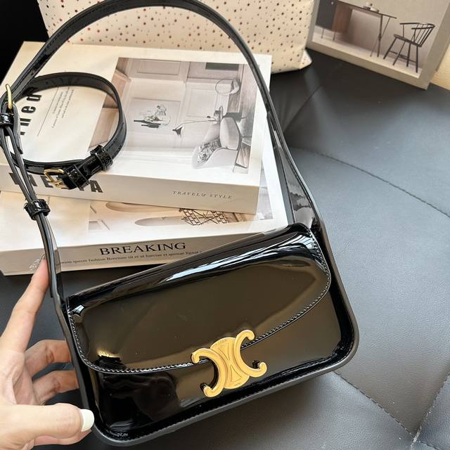 Celine 24秋冬秀款漆皮腋下包 漆皮的美搭配凯旋门logo 适配度简直满分 扣子是磁吸扣 干净 优雅的线条感 温柔又优雅 漆面牛皮,独特光泽惑与辨识度 尺
