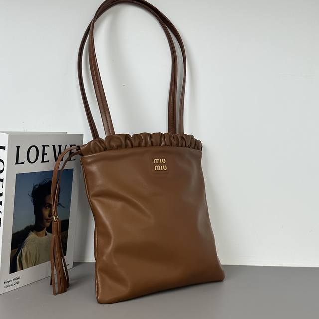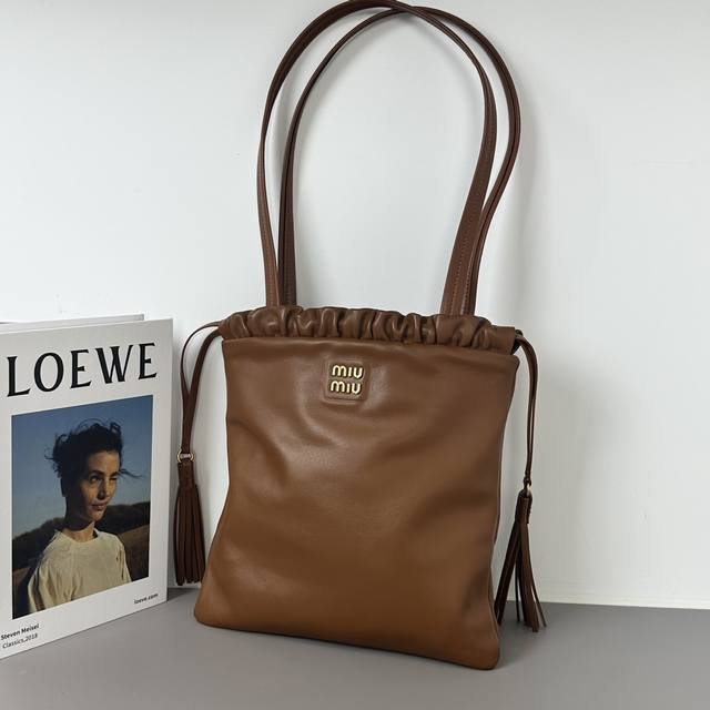 / Miu新款羊皮抽绳包 又称福袋包来咯 秋天就是miu的主场 巧克力色系的都吼吼看~托特抽绳包时尚麂皮秋冬感十足 款号:7032 尺寸:2830Cm .Hh