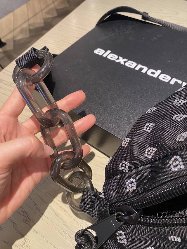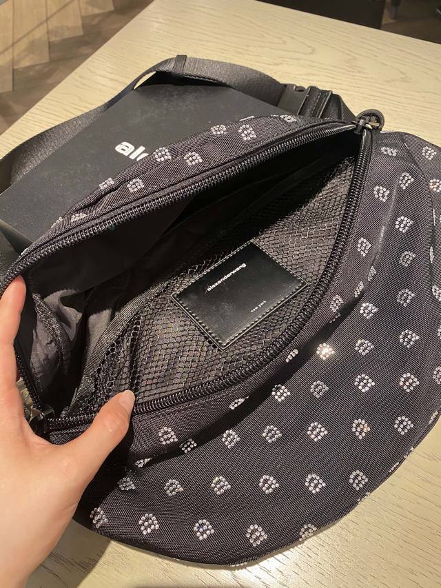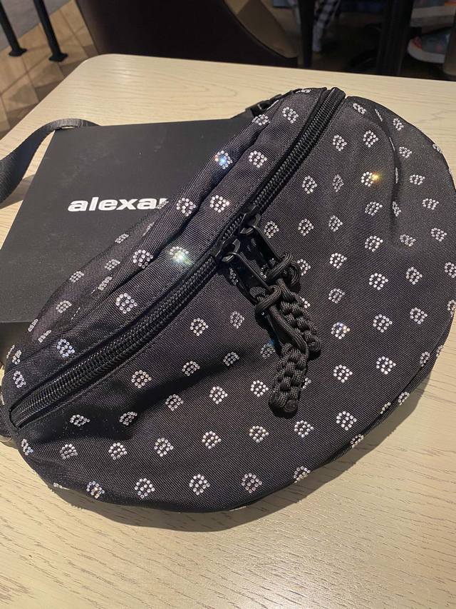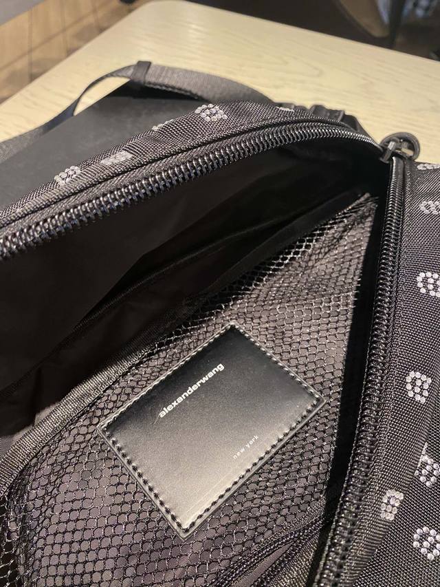 出货啦情侣款 男女通用 Alexander Wang 这款 “Attica” 单肩包脱胎自实用的大号健身包,却更具街头酷感。单品以结实耐磨的黑色帆布制成,烫钻a字品牌标志,可调式织带一端缀有精致链环,包内足以容纳一天所需的随身物.尺寸 9Cm *21Cm *40Cm20052大王