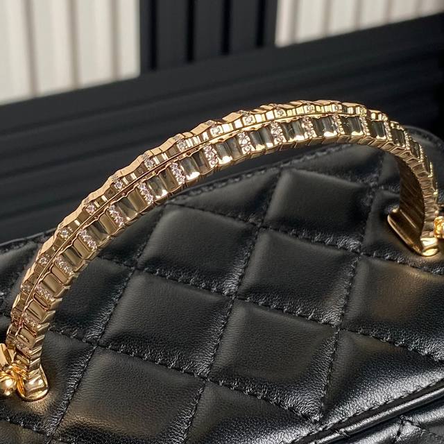 Chane1 24S高级钻石手柄 化妆包 Ap4066 这只 手柄镶嵌小钻石 搭配柔软小羊皮 细节感满满 贵气精致感狠狠拿捏了 经典的黑色菱格配链条 自带优雅高