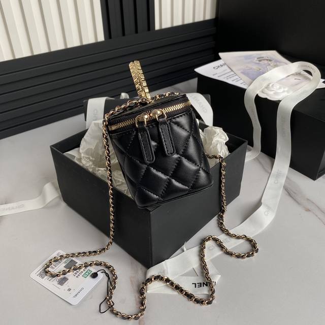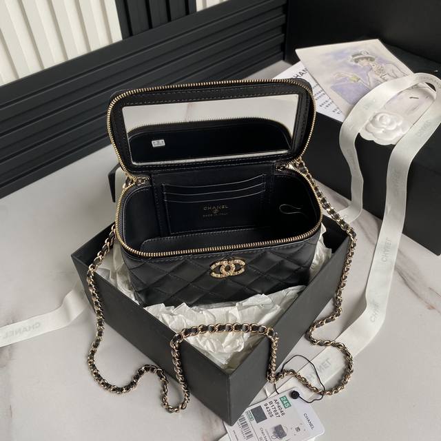 / Chane1 24S高级钻石手柄 化妆包 Ap4066 这只 手柄镶嵌小钻石 搭配柔软小羊皮 细节感满满 贵气精致感狠狠拿捏了 经典的黑色菱格配链条 自带优雅高