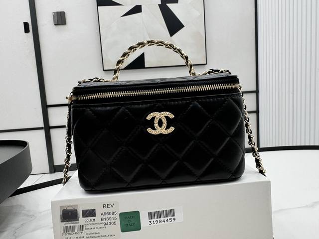 / A96085 Chanel 24A 手工坊 手提款化妆包 太重工啦~水钻手提浮雕工艺logo 太优雅了 很温柔瞬间被迷倒 细节处理上很完美 尺寸:17Cm