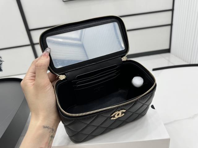 A96085 Chanel 24A 手工坊 手提款化妆包 太重工啦~水钻手提浮雕工艺logo 太优雅了 很温柔瞬间被迷倒 细节处理上很完美 尺寸:17Cm