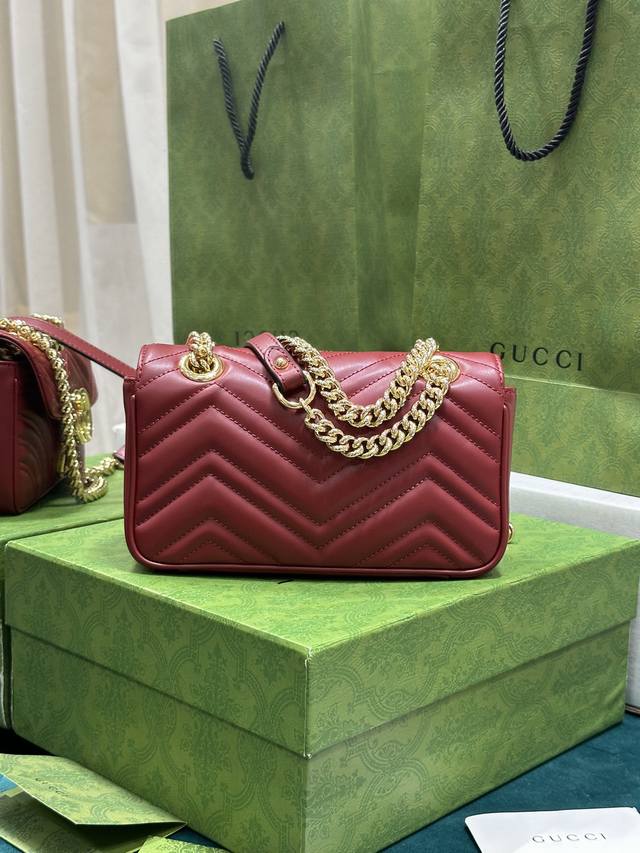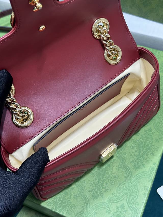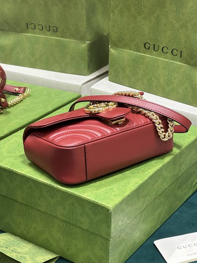 肩背包以品牌gucci Rosso Ancora红色匠心呈献,选用早秋经典配色演绎标志性款式,搭配浅金色调配件和象牙白色皮革衬里,融蕴隽永风范。