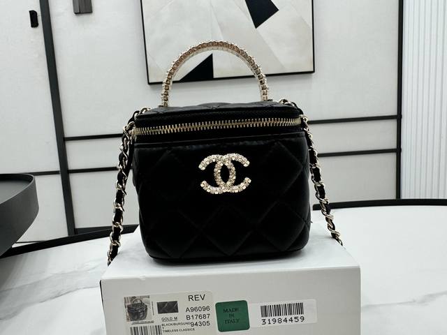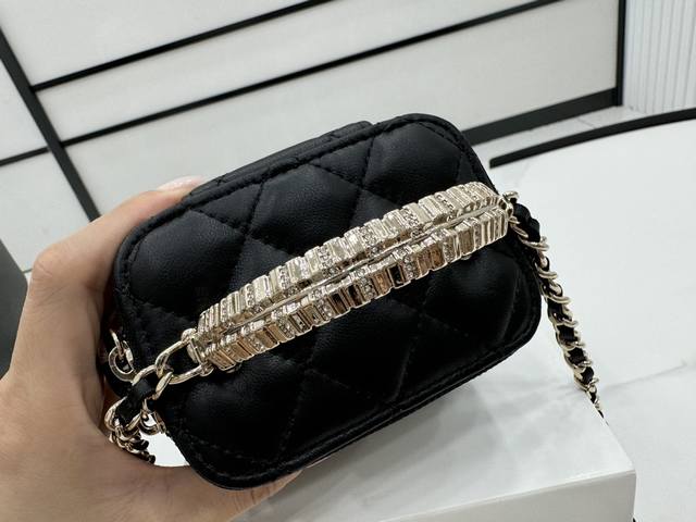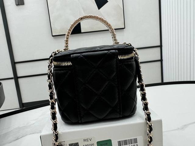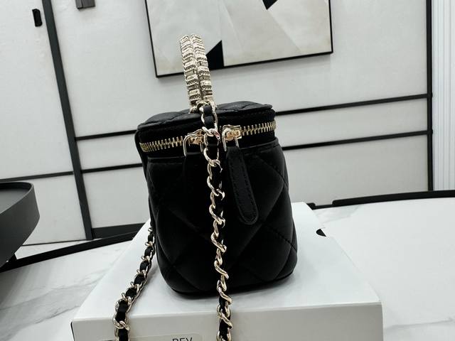 A96096 Chanel 羊皮手柄盒子包 手柄很有特色 重工打造 金属手柄woc第一眼看到就深深爱上 进口羊皮质感柔滑细腻 首先就是手感舒适 超好 颜值不必说 直接闭眼入不会错 很好打理 也是百搭型实现了单背斜挎腋下背手拎的效果简直就是福音很精致 值得珍藏 尺寸: 11*8.5*7Cm