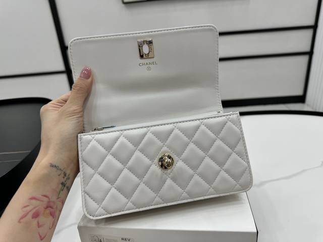 A96094 Chanel 羊皮手柄woc 手柄很有特色 重工打造 金属手柄woc第一眼看到就深深爱上 进口羊皮质感柔滑细腻 首先就是手感舒适 超好 颜值不必说 直接闭眼入不会错 很好打理 也是百搭型实现了单背斜挎腋下背手拎的效果简直就是福音很精致 值得珍藏 尺寸: 19Cm