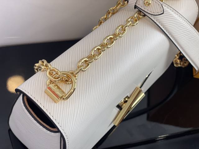 Twist 中号链条包于 2015 度假系列宣告新古典主义风尚。取材品牌标志性 Epi 皮革,点缀宛如雕塑般的 Lv Twist 扭锁,释放金属的耀目光泽。巧妙的波浪形包底暗藏容量玄机;滑链肩带折叠或展开,实现肩背或斜挎体验,以唯美气质出席昼夜场合。23.0 X 17.0 X 9.5 厘米 长 X 高 X 宽