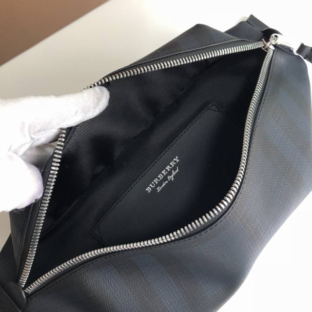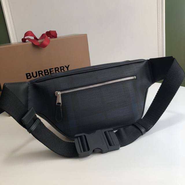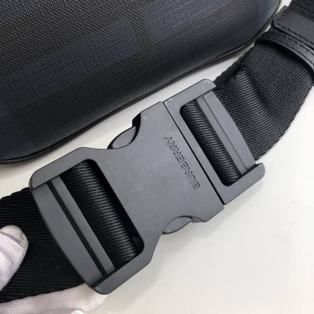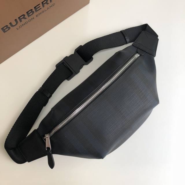 B家纯原新款腰包借鉴九十年代街头风格,装饰 London 格纹,搭配平滑皮革细节。可用背带斜背或系于腰部。31 X 7.5 X 16Cm 肩背带最短长度:54C