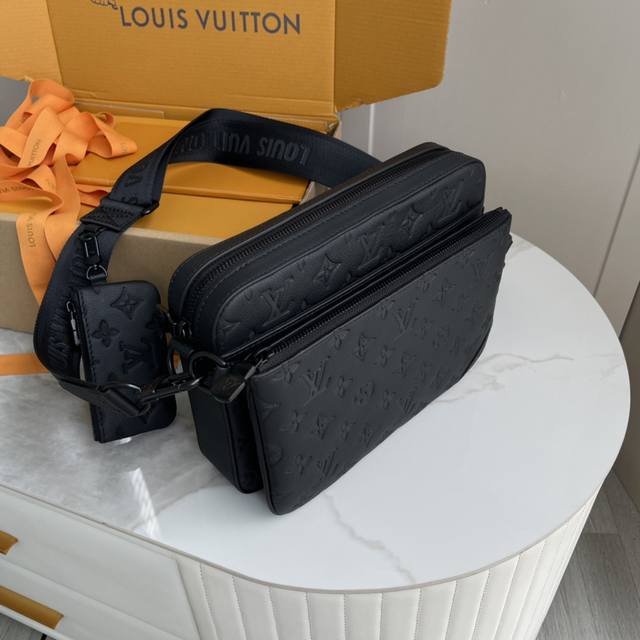 / 变码芯片版 内部价 款号: M46602 原单加强版 独家实拍背景图 本款 Trio 邮差包取材 Monogram 压纹牛皮革,拉链前袋和肩带处的小号零钱包均可