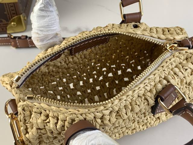 / 出厂价 Nano Speedy 手袋 M83525 拉菲草 编织 本款 Nano Speedy 手袋取材马达加斯加匠人钩编的拉菲草,以可拆卸路易威登皮革贴饰彰显
