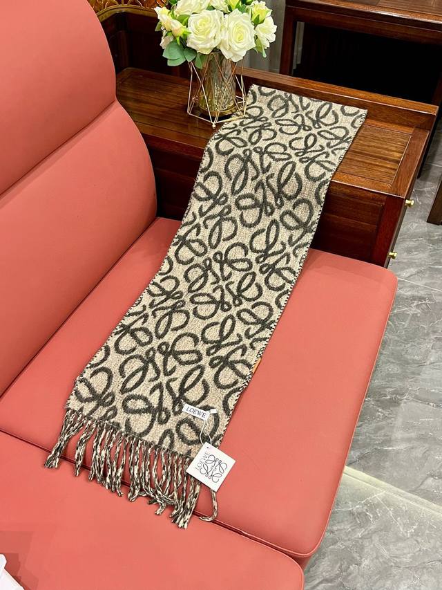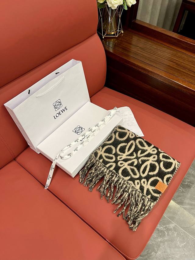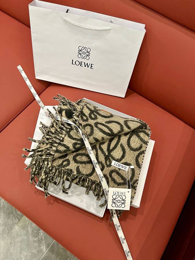 配密封丝带礼盒 月入3K我超会买系列 Loewe羊毛围巾 羊毛马海毛围巾 妥妥老钱风 大地色 奶茶色 2种选择 梦幻配色超高颜值...