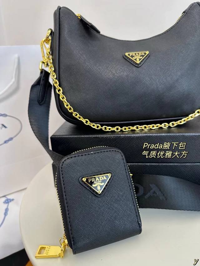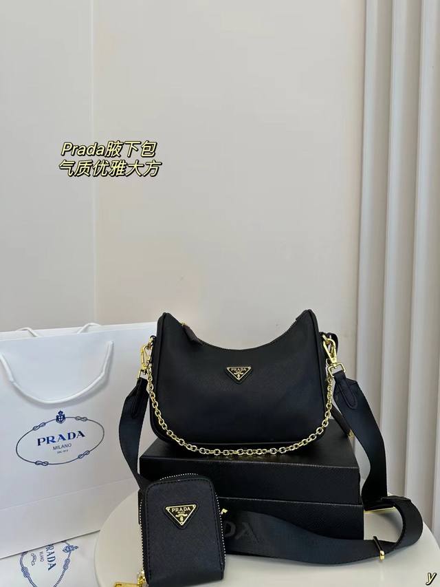 / 配盒子 普拉达腋下包 Prada如影随形 充满了不一样的帅气感 甜酷辣妹穿搭必备 尺寸:22.13